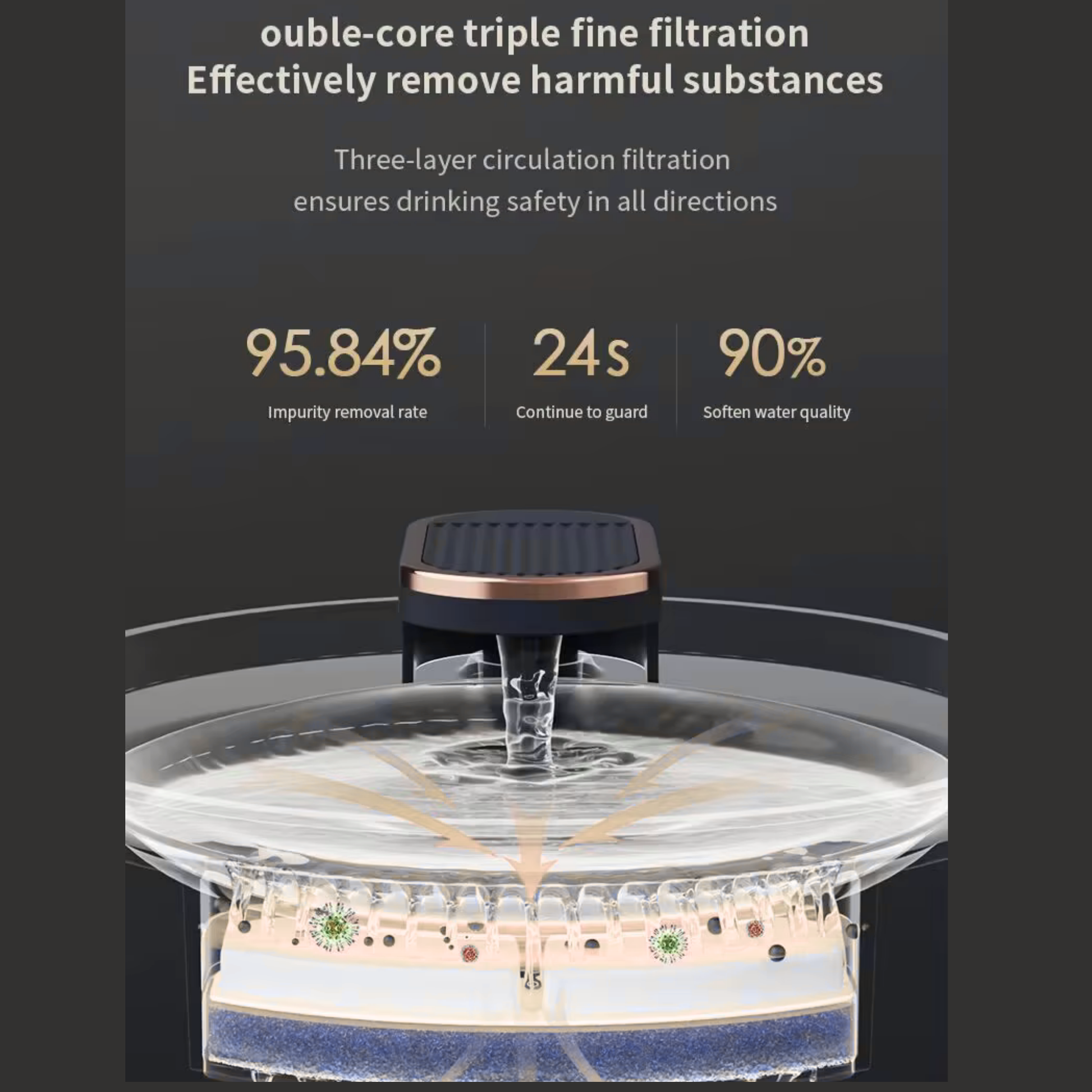 System: Built-in filtration system that helps keep water clean and fresh, encouraging pets to drink more.